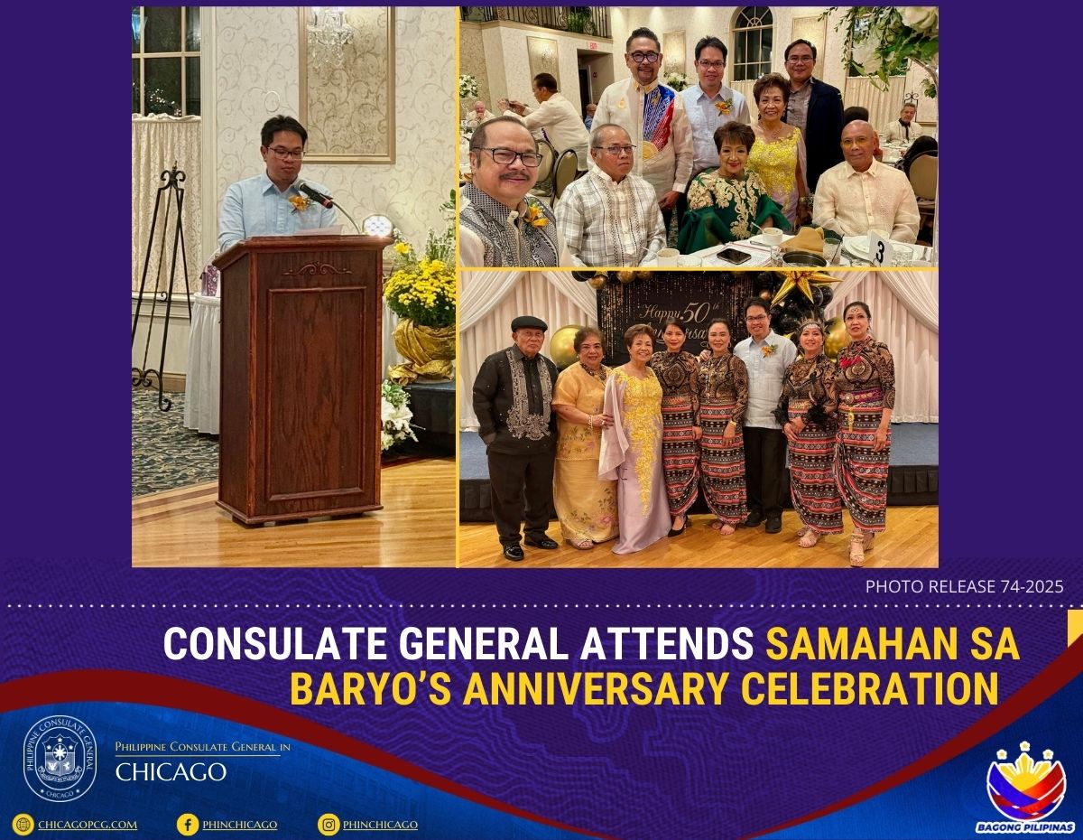The Consulate General, represented by Consul Melvin Almonguera and Assistance-to-Nationals Officer Atty. Mark Arinquin, graced the Samahan sa Baryo’s golden anniversary celebration on 19 September 2025 held in Lemont, Illinois.