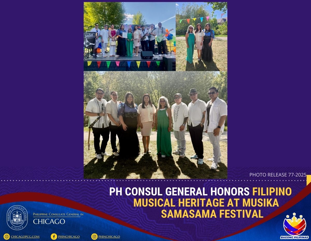 CHICAGO, IL – Consul General Melanie Rita B. Diano of the Philippine Consulate General in Chicago attended the Musika SamaSama Filipino Festival held at Eugene Field Park on 27 September 2025, celebrating Filipino culture and musical heritage in the heart of Chicago.