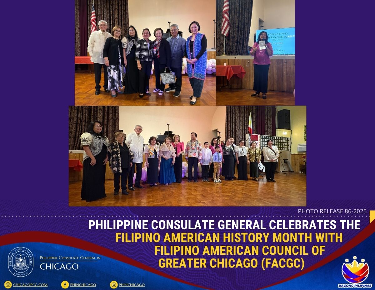 The Philippine Consulate General in Chicago celebrated the Filipino American History Month with the Filipino American Council of Greater Chicago (FACGC) on 18 October 2025 at the Rizal Center in Irving Park, Chicago.