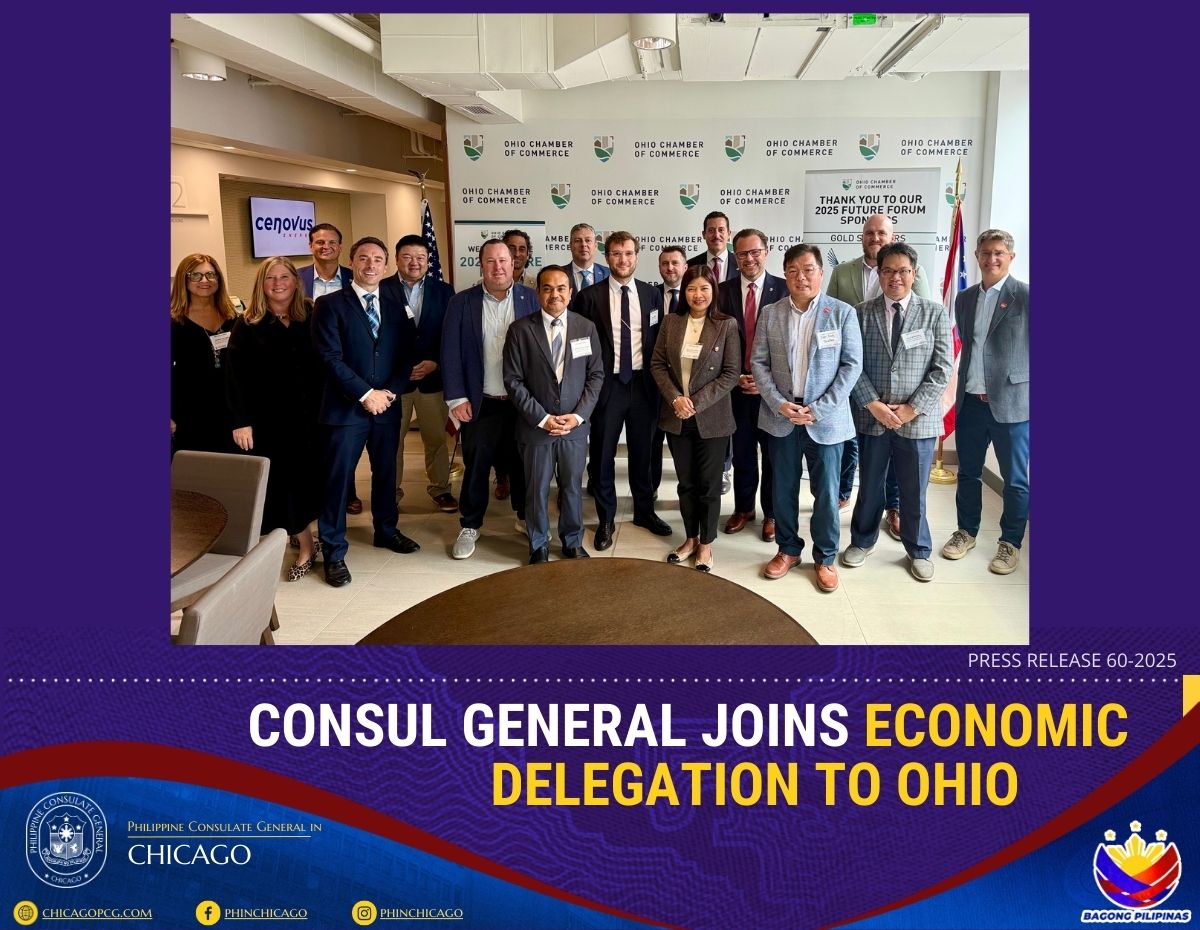 CHICAGO 25 September 2025– Consul General Melanie Rita Diano, together with Consul Melvin Almonguera, participated in a familiarization trip to Columbus and Cincinnati, Ohio on 22–23 September 2025. Organized by the Chicago International Trade Commissioners’ Association (CITCA), the delegation also included Chicago-based trade and investment representatives from France, Portugal, Poland, Czech Republic, Hungary, Malaysia, and Hong Kong.