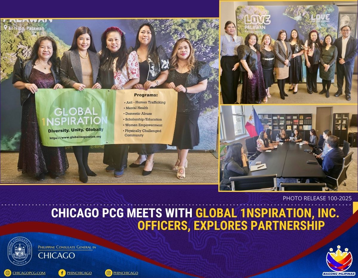 Chicago, 17 November 2025 - Consul General Melanie Rita B. Diano received a courtesy call from Global 1nspiration, Inc., a Wisconsin-based non-profit organization led by President Jeanette Jordee, at the Philippine Consulate General in Chicago on 12 November 2025.