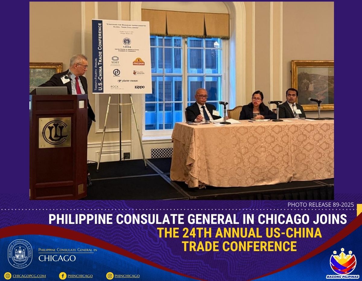 21 October 2025, CHICAGO, ILLINOIS – The Philippine Consulate General in Chicago participated at the 24th Annual US-China Trade Conference on 16 October 2025 held at the Union League Club of Chicago in a session on “Southeast Asia Forum: Will ASEAN be the next destination for sourcing and market expansion?”
