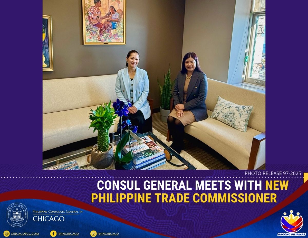 Consul General Melanie Rita Diano received Trade Commissioner Alma Argayoso of the Philippine Trade and Investment Center, New York (PTIC-NY) at the Consulate General on 12 November 2025. The visit marked Ms. Argayoso’s first official trip to Chicago since assuming her post last July at the PTIC-NY.