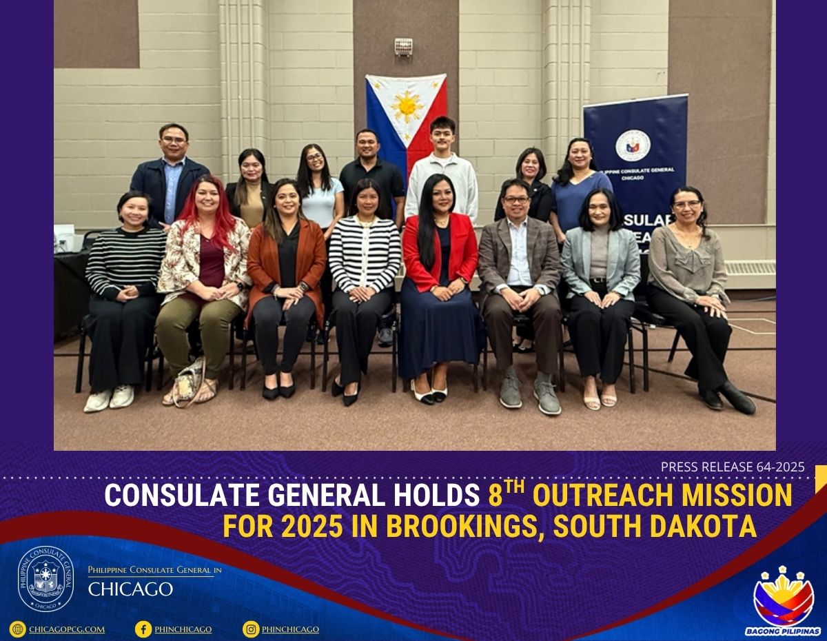 CHICAGO 20 October 2025- Bringing its services closer to the Filipino and Filipino-American communities in the US Midwest, the Philippine Consulate General in Chicago conducted its 8th consular mission for the year in Brookings, South Dakota on 18 October 2025. The one-day event was held at GracePoint Church (Old Sanctuary), 1420 Orchard Dr, Brookings, South Dakota 57006 (some 630 miles away from the Consulate). The last outreach activity in the state was held in July 2022.