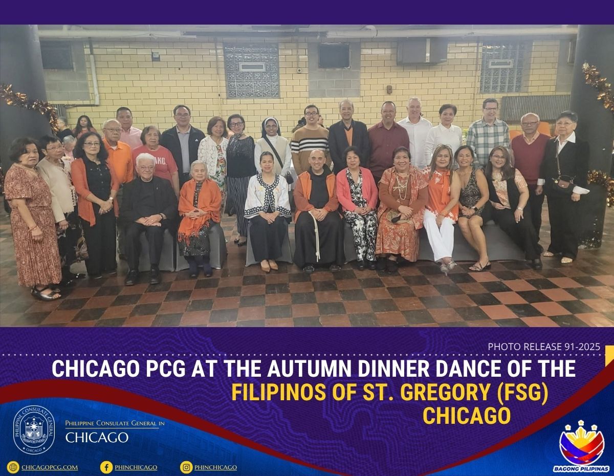 4 November 2025 - The Philippine Consulate General in Chicago, represented by Consul Ma. Theresa Alders and Mr. Mark Arinquin, joined the members, officers and friends of the Filipinos of St. Gregory (FSG) Chicago in their Autumn Dinner Dance on 25 October 2025 at the St. Gregory Social Hall.