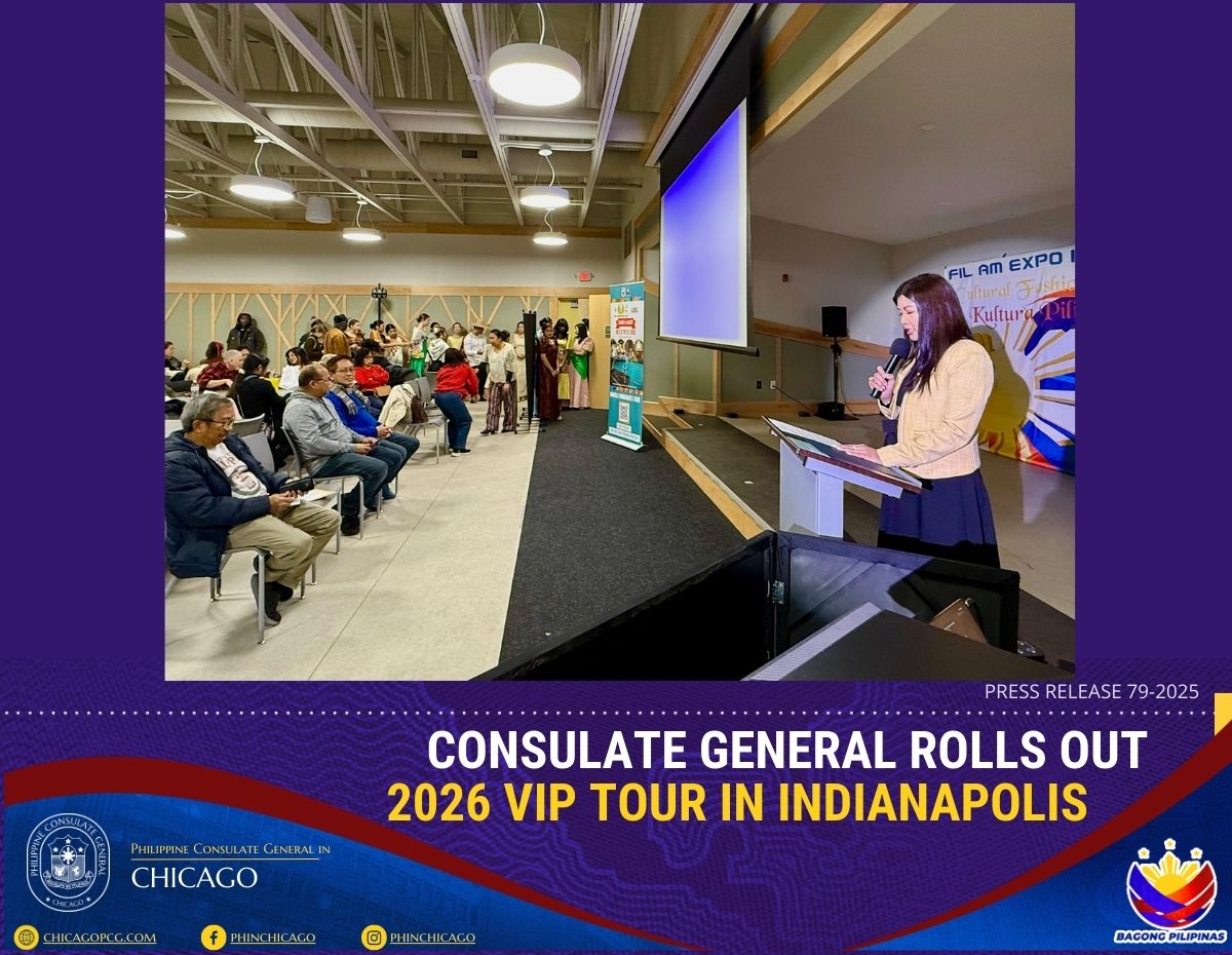 CHICAGO 16 December 2025- Following its successful launch in Chicago on 20 November 2025, the Consulate General rolled out the 2026 Very Important Pinoy (VIP) Tour in Indiana on 13 December 2025. The rollout took place during the inaugural Fil-Am Expo organized by the Filipino American Heritage and Cultural Arts of Indiana (FAHACA.IN) at Jameson Camp in Indianapolis. Attended by over 100 visitors, the VIP Tour segment became a highlight of the event, which brought together Filipino-American entrepreneurs in Indiana and showcased Philippine fashion and art.