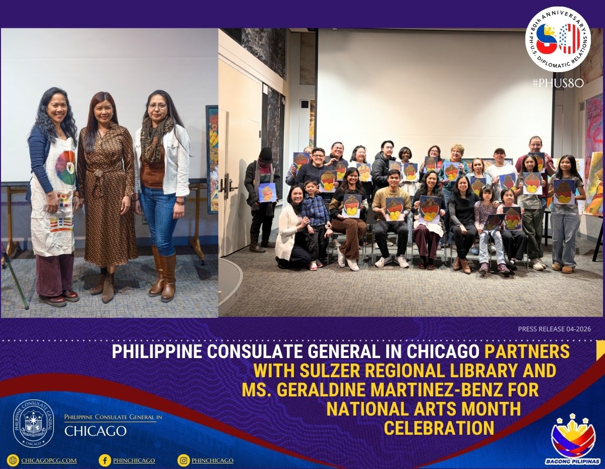 The Philippine Consulate General in Chicago, in partnership with the Sulzer Regional Library, successfully hosted a painting activity titled “Sip, Paint, Relax” featuring artist Geraldine Martinez-Benz on 28 February 2026 at the Sulzer Regional Library.