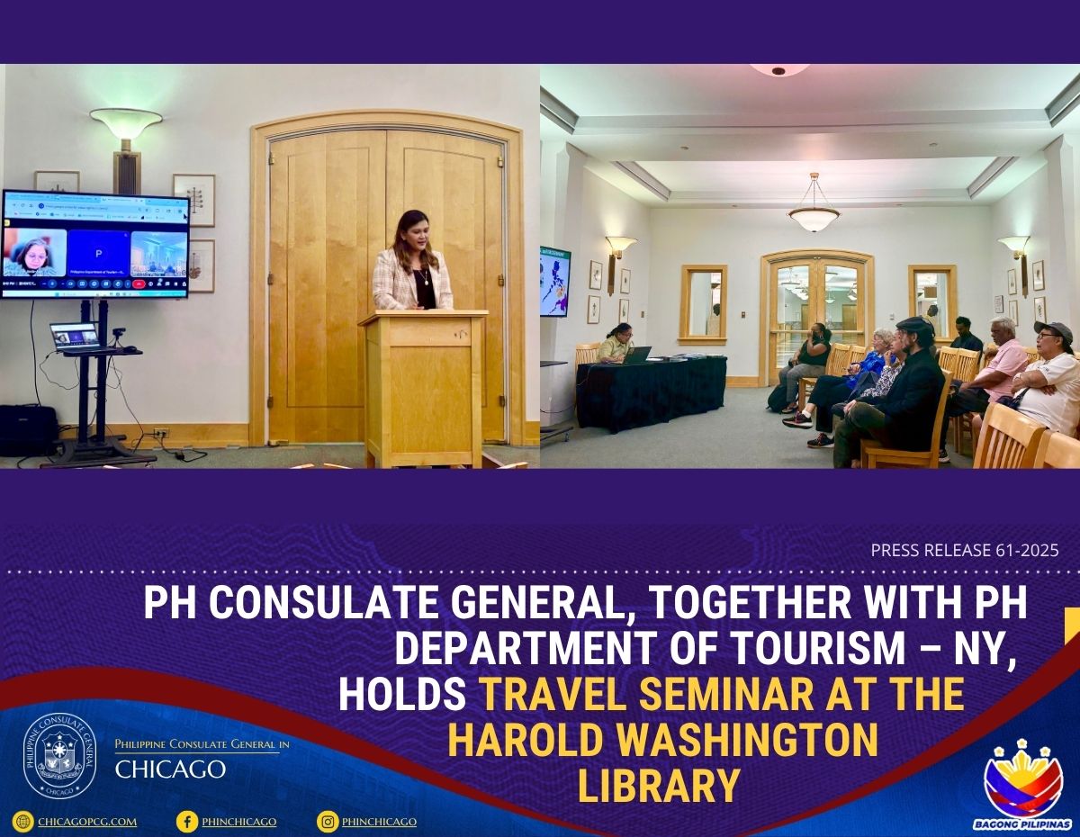 CHICAGO, IL– The Philippine Consulate General in Chicago held a "Travel to the Philippines" seminar on 01 October 2025, at the Harold Washington Library Center's Author's Room, marking the opening of Filipino American History Month.